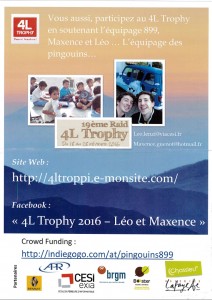 Cette année encore, APR a été partenaire du 4L Trophy en parrainant l’équipage « Lenzi-Guenot ».